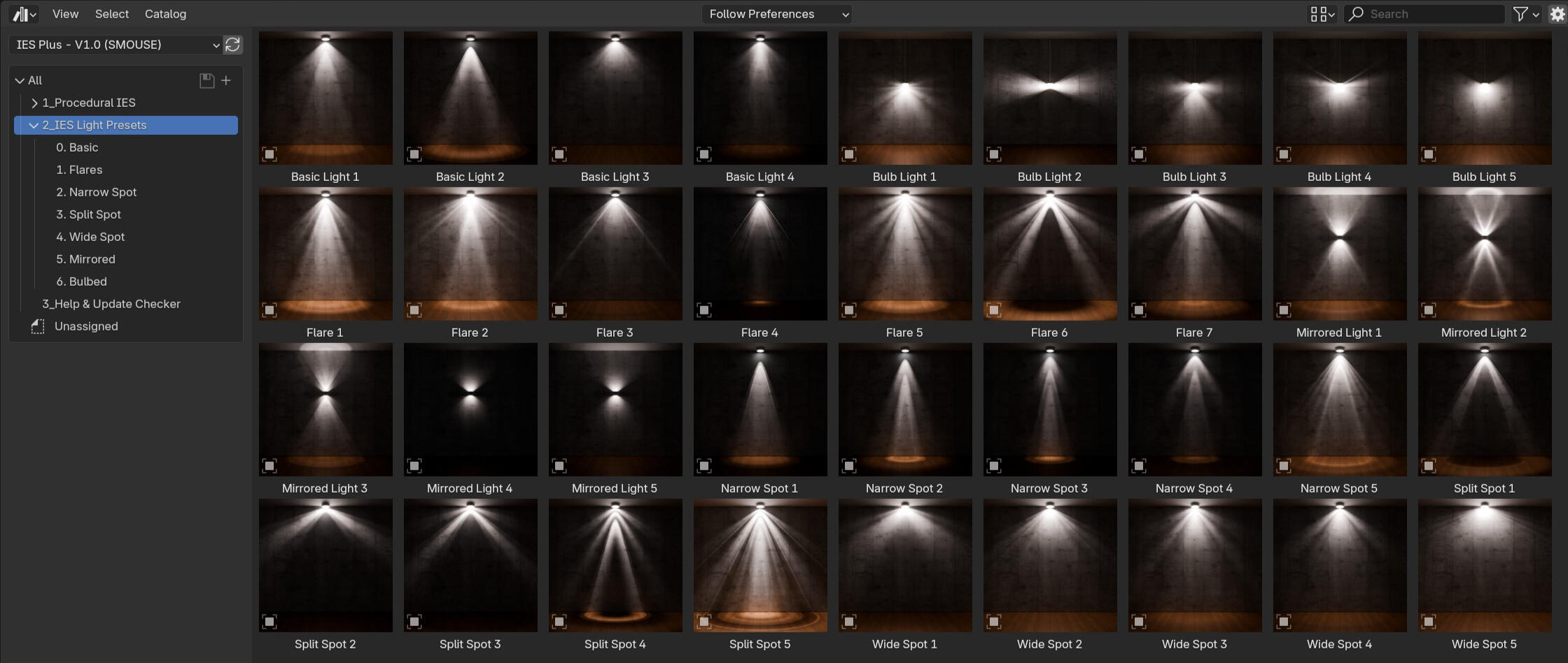 They're not just static profiles - think of them as starting points for your perfect lighting setup.Drag and drop the look you want and start customizing. No more digging through unnamed IES files in your explorer - everything you need is right in Blender's shader editor.